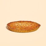 Курка, гриби та карамелізована цибуля у вершках на пісочній основі.