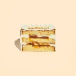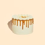 Білий бісквіт з карамельним топінгом Тоффі, вершковим крем-сиром та бананом.